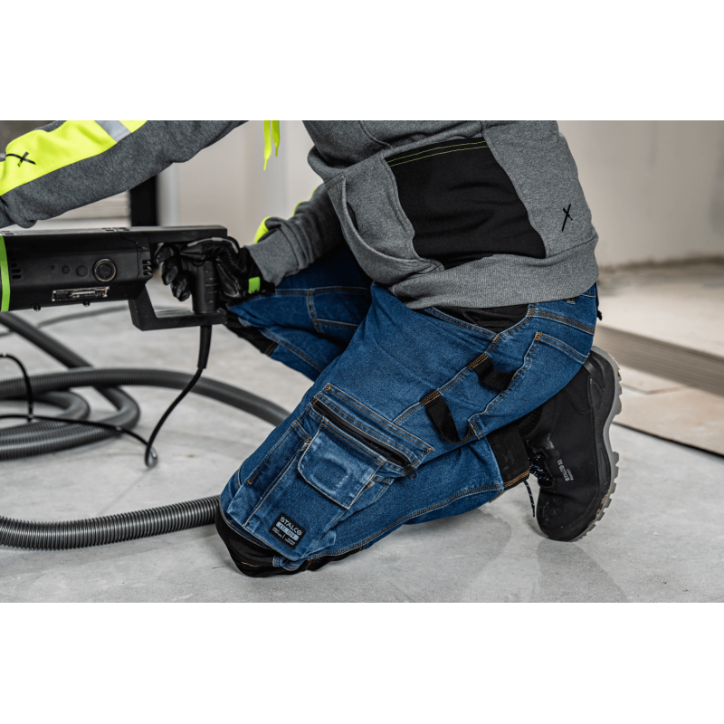 Džínsy STALCO PERFECT JEAN sú navrhnuté pre profesionálov, ktorí potrebujú spoľahlivú pracovnú výbavu s civilným vzhľadom. Kombinujú odolnosť, pružnosť a funkčnosť s klasickým štýlom džínsov – ideálne pre elektrikárov, stolárov, inštalatérov aj montérov.