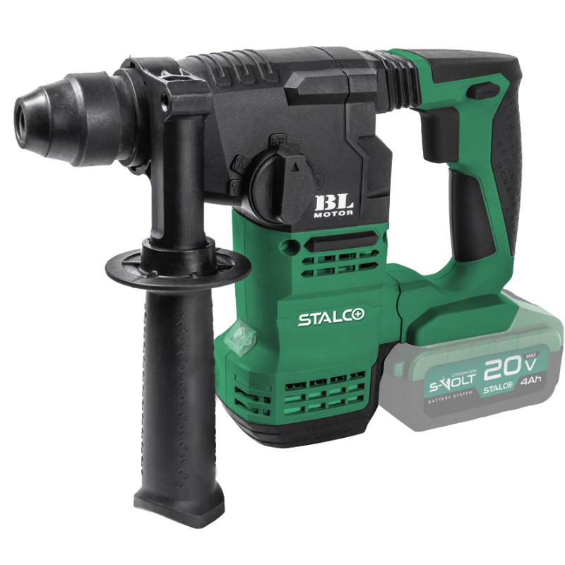 Akumulátorová vŕtačka s príklepom RHS20-18BL sa stane nepostrádateľnou pomôckou pri renovačných prácach. Náradie je určené na dokončovacie a montážne práce na ťažko prístupných miestach. Nástroj poháňa akumulátor s kapacitou 4 Ah, ktorý poskytuje vŕtacie a príklepové funkcie. Akumulátorová príklepová vŕtačka STALCO podporuje vrtáky a sekáče vybavené skľučovadlom SDS Plus. Dokáže vŕtať do betónu do priemeru 18 mm, do dreva do priemeru 20 mm a do ocele do priemeru 13 mm. Dobre sa osvedčuje aj pri frézovaní podkladu a pribíjaní keramických obkladačiek. Je vybavená bezkartáčovým motorom a výkonným príklepovým mechanizmom, ktorý uľahčuje prácu aj s veľmi tvrdými materiálmi. Akumulátorové vŕtacie kladivo má na spínači reguláciu otáčok, ako aj funkciu spätného chodu. Okrem toho je zmena pracovného režimu pomocou spínača jednoduchá a intuitívna.
