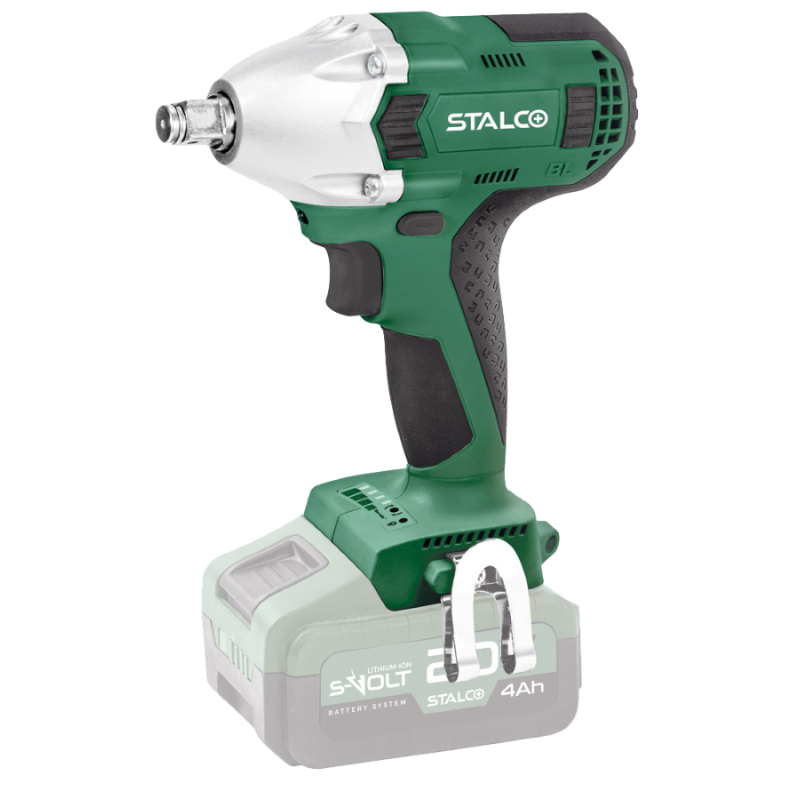 Rázový kľúč IWS20-300BL je užitočným nástrojom pri montážnych prácach. Možno ho použiť pri stavebných prácach vykonávaných na oceľových alebo drevených konštrukciách. Je určený na prácu so skrutkovými spojmi a pracuje s vysokým krútiacim momentom až 300 NM. Rázový kľúč STALCO je vybavený štvorcovou pracovnou rukoväťou, ktorá je určená na stabilné osadenie univerzálnych nástrčiek. Vďaka tomu je toto náradie ideálne na montáž oceľových konštrukcií, drobné mechanické práce alebo stavebné práce. Rázový kľúč má bezkartáčový motor s dlhou životnosťou, ktorý ďalej znižuje spotrebu energie. V dôsledku toho nie je potrebné tak často dobíjať akumulátor, čo má vplyv na jeho životnosť. Vďaka systému S-Volt ho možno napájať z akumulátorov iných zariadení STALCO. Kľúč je vybavený dodatočnou funkciou osvetlenia pomocou troch LED diód, takže práca v ťažko prístupných miestach je jednoduchšia. Komfort obsluhy zvyšuje aj prehľadný ovládací panel a automatická ochrana proti prehriatiu.