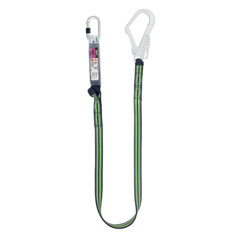Vyrobené z odolného polyesterového popruhu so šírkou 30 mm a dĺžkou 1,8 m, poskytuje dostatočnú voľnosť pohybu bez kompromisov na bezpečnosti. Integrovaný amortizátor so šírkou 35 mm efektívne tlmí nárazové sily (≤ 6 kN) pri páde, čím znižuje riziko zranenia.