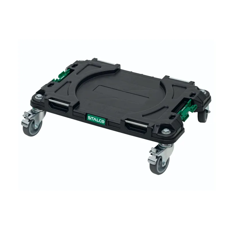 Transportná platforma STALCO SYSTEM tvorí základňu pre vytvorenie vlastnej mobilnej dielne. Stačí na ňu nacvaknúť ďalšie boxy, organizéry alebo zásuvky a môžete s celou výbavou pohodlne manévrovať po stavbe.