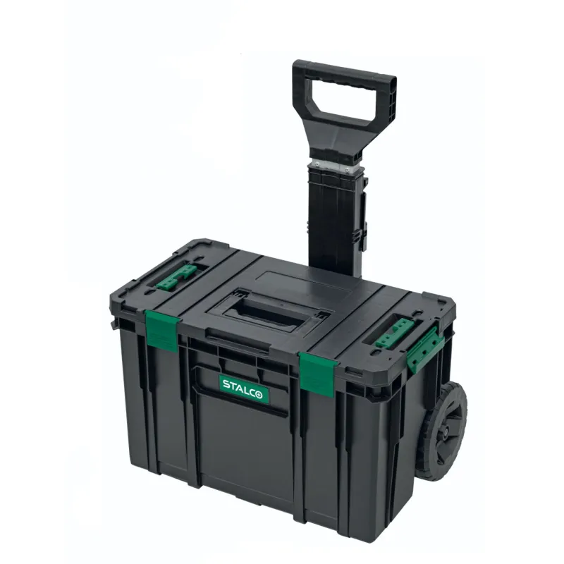 Pojazdný organizér na náradie STALCO SYSTEM BM01 je najväčším modulom z tejto profesionálnej rady a slúži ako perfektná mobilná základňa pre celú zostavu. Je navrhnutý pre prenos ťažkého náradia aj v náročnom teréne na stavbe.