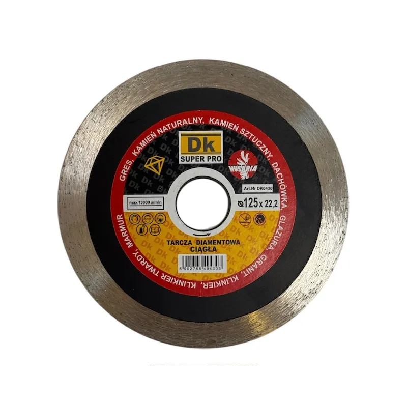 Diamantový rezný kotúč DK0466 je určený na presné a čisté rezanie keramiky, gresu, porcelánu, žuly, mramoru, glazúry a ďalších tvrdých materiálov. Priemer Ø125 mm, upínací otvor 22,23 mm a tenká rezná hrúbka 1,4 mm umožňujú mimoriadne hladký rez s minimálnym štiepením. Ideálny pre profesionálne aj domáce použitie.