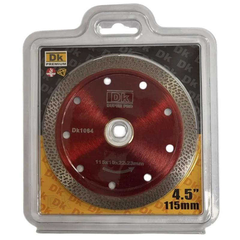 Diamantový rezný kotúč DK1064 je určený na presné a čisté rezanie keramiky, gresu, porcelánu, žuly, mramoru, glazúry a ďalších tvrdých materiálov. Priemer Ø115 mm, upínací otvor 22,23 mm a tenká rezná hrúbka 1,0 mm umožňujú mimoriadne hladký rez s minimálnym štiepením. Ideálny pre profesionálne aj domáce použitie.