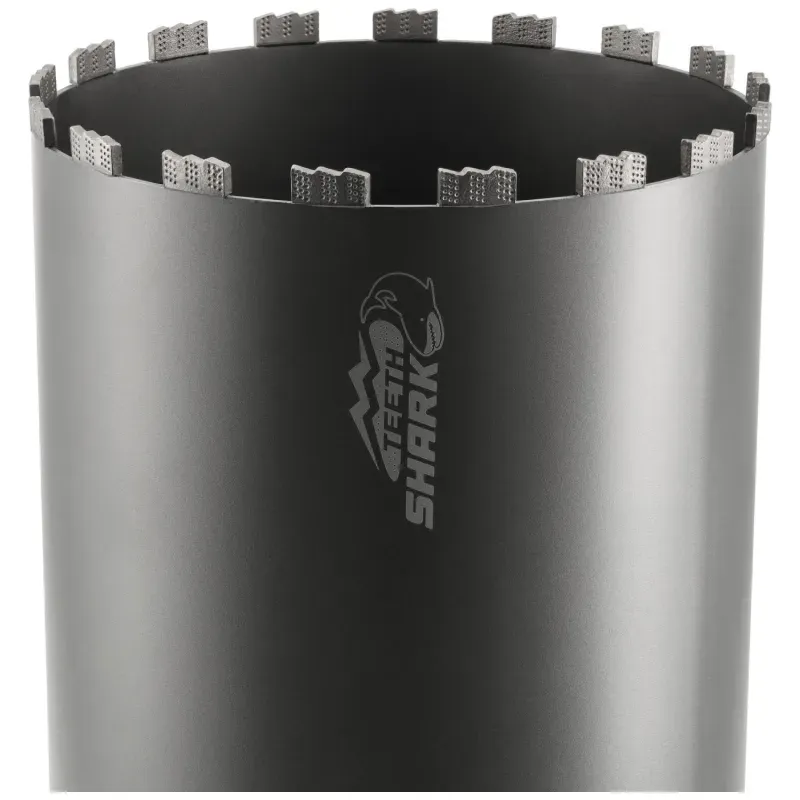 Korunka je osadená vysokokvalitnými, ostrými diamantovými segmentmi SHARK s výškou 12 mm. Segmenty sú k telu korunky pripevnené pokročilou technológiou laserového zvárania, čo zaručuje maximálnu pevnosť spoja a odolnosť aj pri najvyššom zaťažení. Po opotrebovaní pôvodných segmentov je možné korunku profesionálne zregenerovať (znovu osadiť novými segmentmi), čo výrazne znižuje prevádzkové náklady.