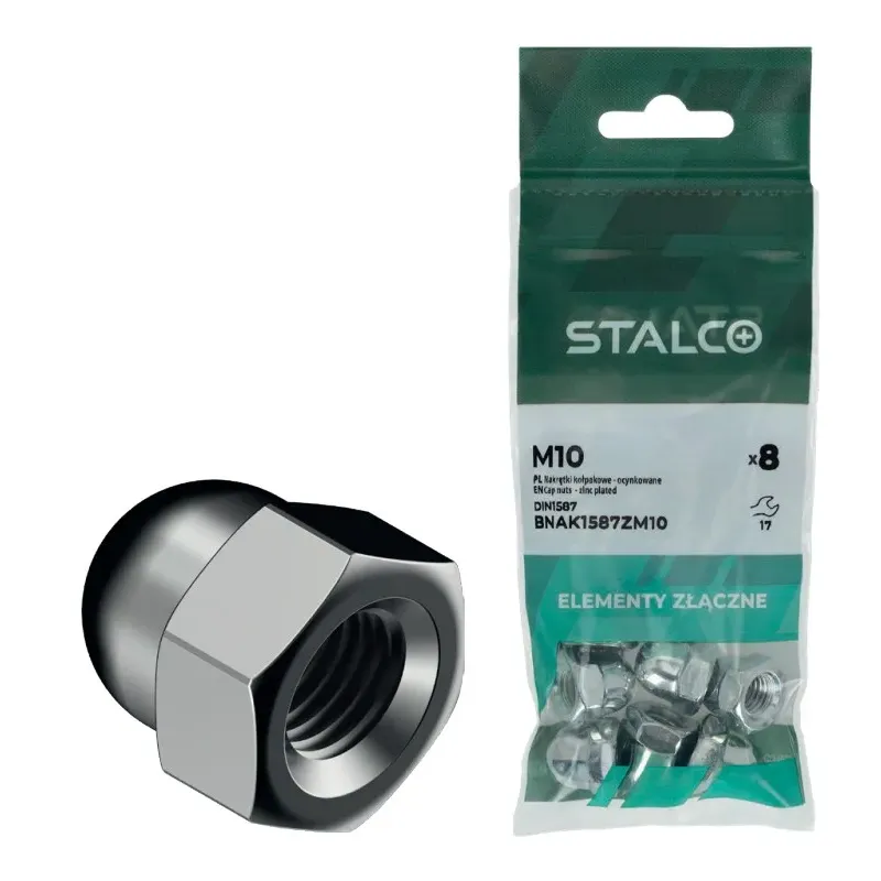 Klobúkové matice STALCO podľa normy DIN 1587 (PN M-82181) sú spojovacie prvky, ktoré chránia prečnievajúci závit skrutky.