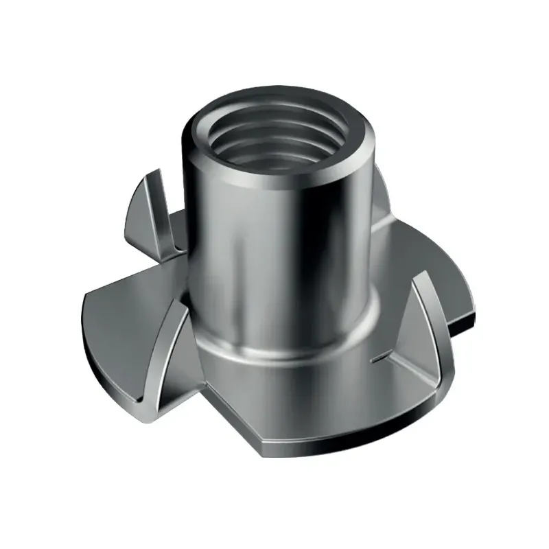 Narážacie matice DIN 1624 z pozinkovanej uhlíkovej ocele. Vybavené štyrmi ostrými hrotmi pre stabilné uchytenie v dreve a materiáloch na báze dreva.