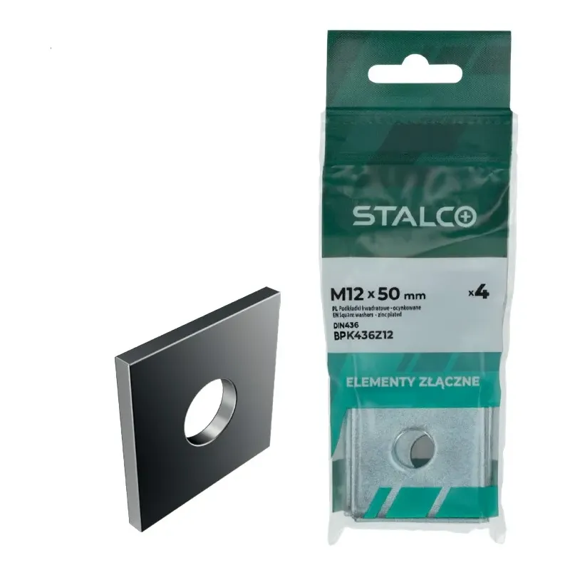Štvorhranné podložky STALCO podľa normy DIN 436 (PN M-82010) sú prvky určené hlavne na použitie pod matice a hlavy skrutiek v drevených, oceľových a iných konštrukciách.