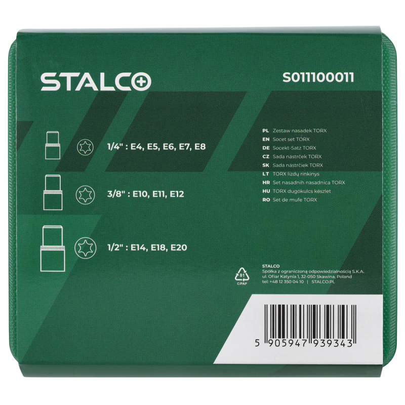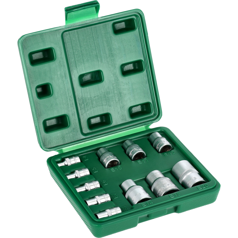 Sada nástrčných hlavíc TORX STALCO je komplexná 11-dielna súprava určená na prácu so skrutkami s hlavou typu E-TORX. Je nepostrádateľným pomocníkom v každej profesionálnej dielni, autoservise aj v garáži domáceho majstra.