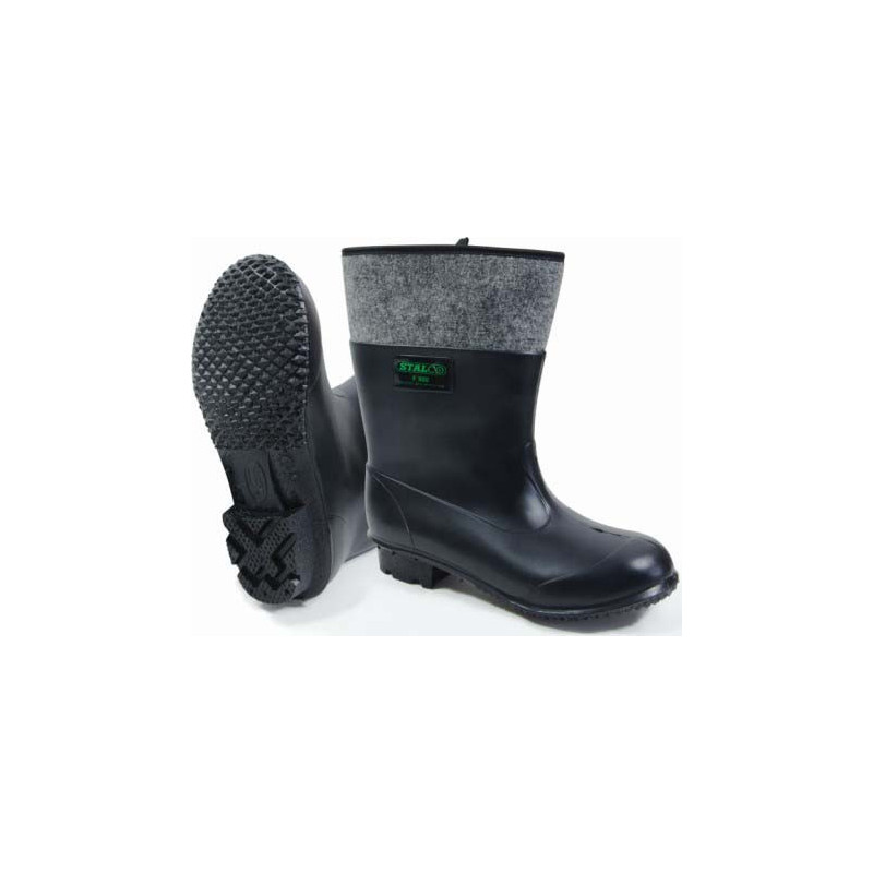 Filcová obuv STALCO "FILCAK" je vyrobená z PVC modifikovaného gumou. Takáto zmes je odolná voči vlhkosti, pružná, trvanlivá a ľahko sa čistí. Vo vnútri čižiem sa nachádza plstená izolácia, ktorá zlepšuje tepelný komfort počas jesenných a zimných prác.