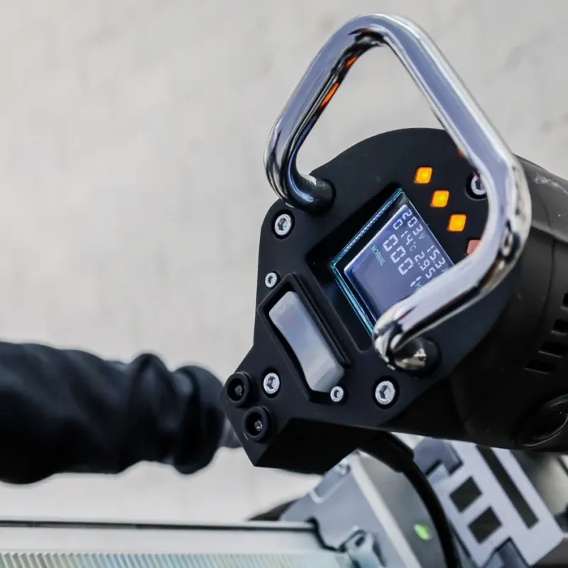 • Informačný LCD displej: Operátor má neustály prehľad o napätí, odoberanom výkone, teplote stroja a dobe prevádzky. Vďaka LED indikátoru zaťaženia dokáže stroj využívať na maximálny výkon bez rizika poškodenia.