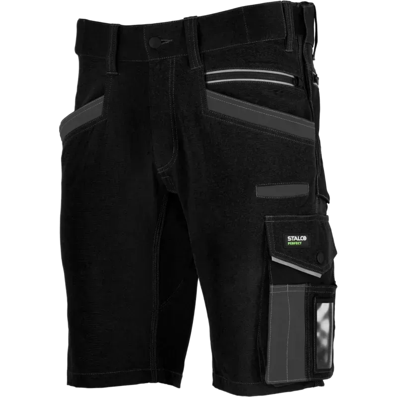 Pracovné šortky STALCO PERFECT STRETCH LINE (čierne) patria do mimoriadne obľúbenej kolekcie elastických odevov. Boli navrhnuté špeciálne pre prácu v teplejších podmienkach a pre úlohy, ktoré si vyžadujú absolútnu voľnosť pohybu, vysokú odolnosť a každodennú funkčnosť.