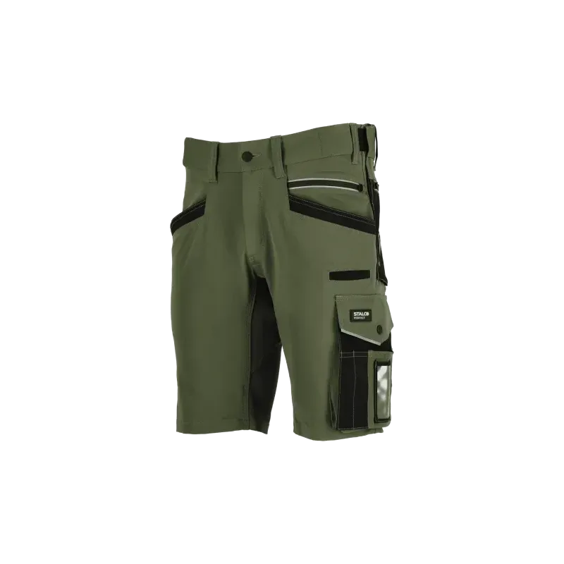 Pracovné šortky STALCO PERFECT STRETCH LINE (olivovo zelené) patria do mimoriadne obľúbenej kolekcie elastických odevov. Boli navrhnuté špeciálne pre prácu v teplejších podmienkach a pre úlohy, ktoré si vyžadujú absolútnu voľnosť pohybu, vysokú odolnosť a každodennú funkčnosť.