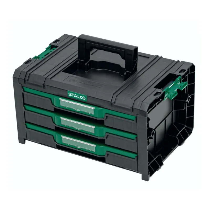 Zásuvkový modul STALCO SYSTEM TB03 s tromi plytkými zásuvkami. Je to dokonalý organizér pre elektrikárov, mechanikov a montérov, ktorí potrebujú mať roztriedené množstvo malého ručného náradia, kľúčov, bitov a skrutiek.