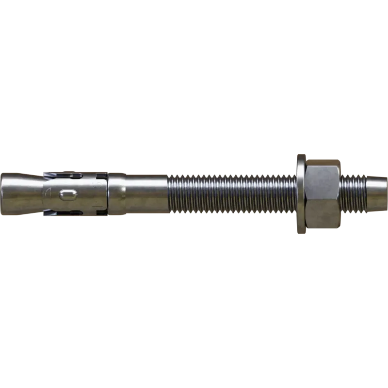 Oceľová plášťová kotva (typ B) pre štandardné statické zaťaženie. Ideálna na rýchlu prievlačnú montáž kovových konštrukcií do nepopraskaného betónu. Galvanicky pozinkovaná s maticou a podložkou.