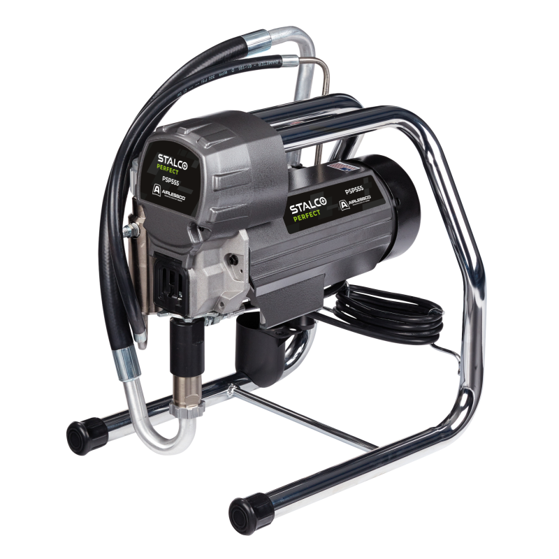 Piestový maliarsky agregát PSP555 maximálny pracovný tlak – 227 bar , maximálny výdatnosť – 2 L/min , maximálna veľkosť dýzy – 0,023" , maximálna dĺžka hadice – 45 m , motor – 7/8 k , Napájanie 230 V , Zabezpečenie 16 A , hmotnosť – 23 kg