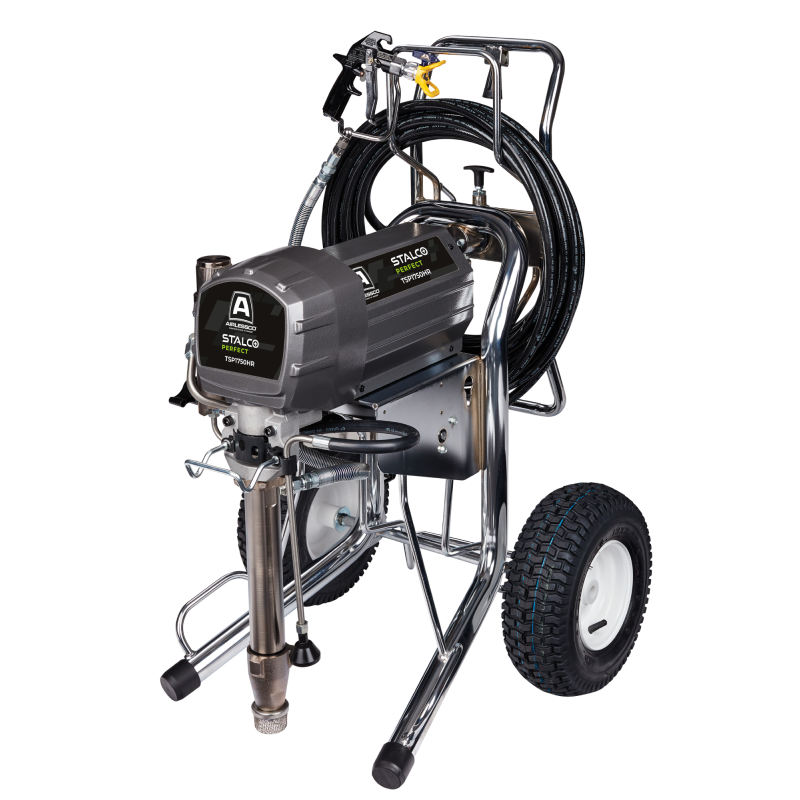 Piestový maliarsko-omietací agregát TSP1750HR maximálny pracovný tlak – 227 bar , maximálna výdatnosť 5,1 L/min. , maximálna veľkosť dýzy (1 pištoľ) – 0,039"" , maximálna veľkosť dýzy (2 pištole) – 0,029"" , maximálna dĺžka hadice – 90m , výkon motora – 2,8 hp napájanie – 230 V , zabezpečenie – 16 A , hmotnosť – 54 kg"