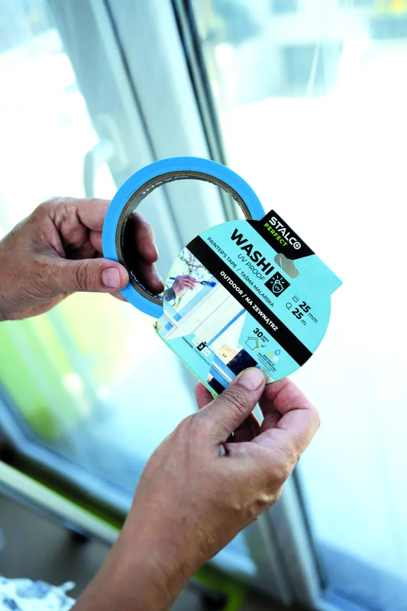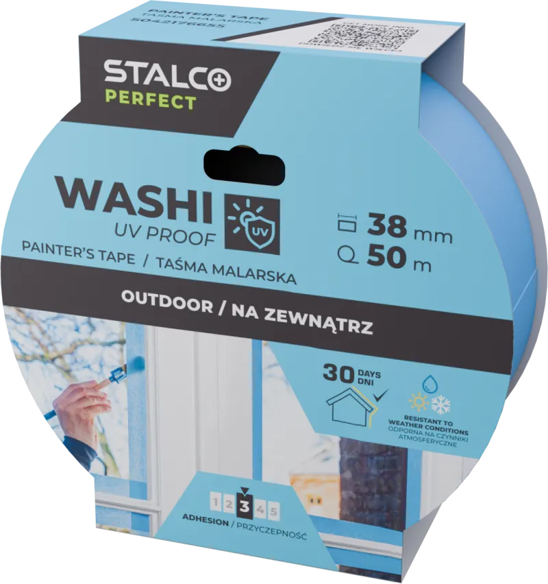 Maliarska páska Washi UV Proof STALCO PERFECT je profesionálna páska vyrobená z vysokokvalitného originálneho japonského papiera washi, určená pre precízne maliarske a dokončovacie práce v interiéri aj exteriéri. Umožňuje dosiahnuť výnimočne čisté, rovné maliarske hrany bez rizika podtekania farby. Vyznačuje sa zvýšenou odolnosťou voči vlhkosti, UV žiareniu (až 45 dní) a premenlivým teplotám. Osvedčila sa aj v miestnostiach so zvýšenou vlhkosťou (kúpeľne, práčovne). Tenký, hydrofóbny a odolný papier washi zaručuje presné oddelenie farieb.
