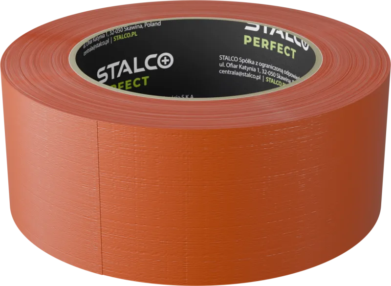 Profesionálna omietkárska páska STALCO PERFECT (48 mm x 50 m) z PE fólie vystuženej sieťovinou. Extrémna priľnavosť (5/5) na drsné povrchy. UV odolná, odtrhnuteľná rukou.