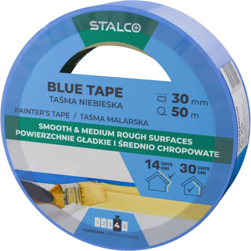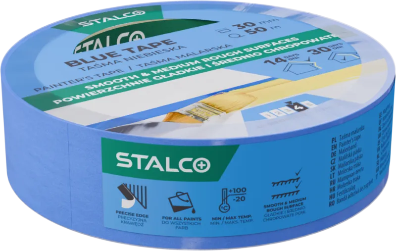 Profesionálna maliarska páska STALCO PERFECT (30 mm x 50 m) určená na striekanie a omietanie. Zaručuje precízne, ostré hrany bez podtekania. Odolná voči UV (14 dní), nezanecháva lepidlo.