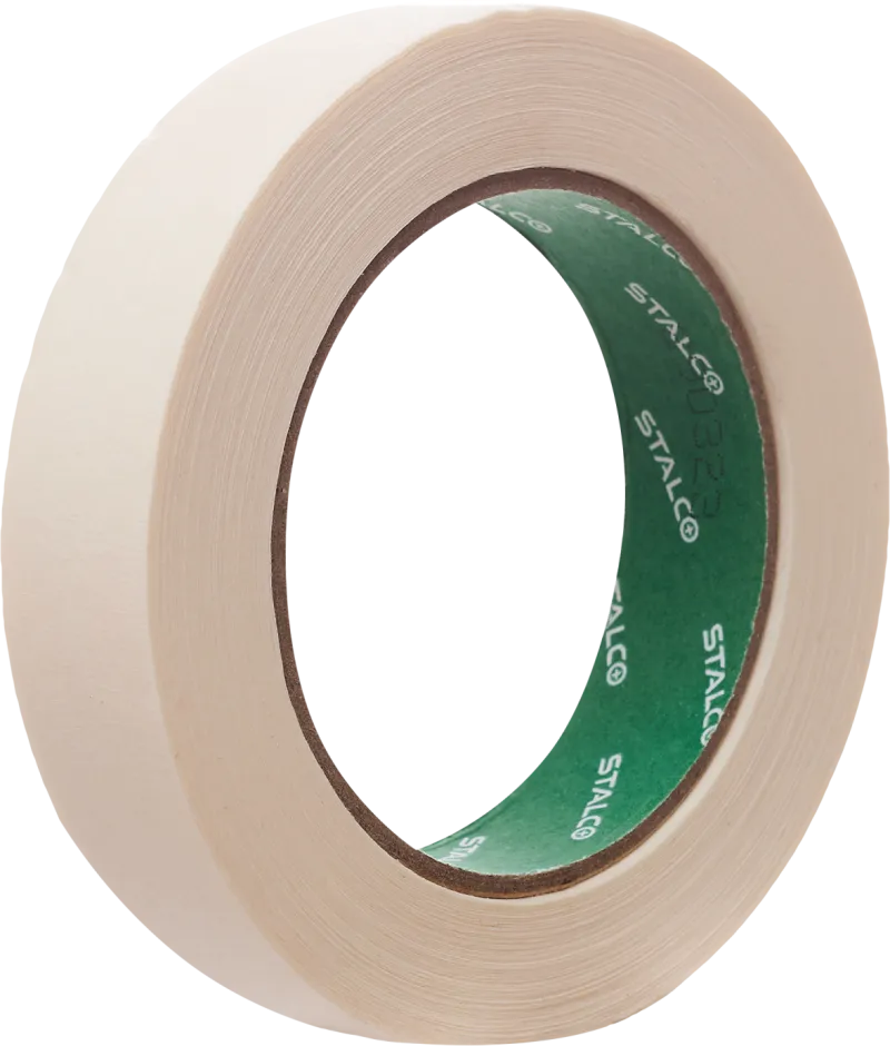 Biela maliarska páska STALCO (25 mm x 50 m) z krepového papiera. Lepidlo na báze rozpúšťadla. Odstránenie do 3 dní bez stôp lepidla. Teplotná odolnosť 120°C.