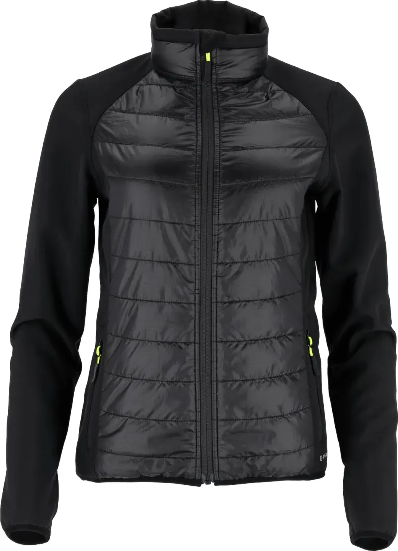 Štýlová dámska hybridná bunda AUGUST W, ktorá kombinuje softshell s prešívanými zateplenými panelmi. Priedušná, vetruodolná a vodeodpudivá, s otvormi na palce a reflexnými prvkami.