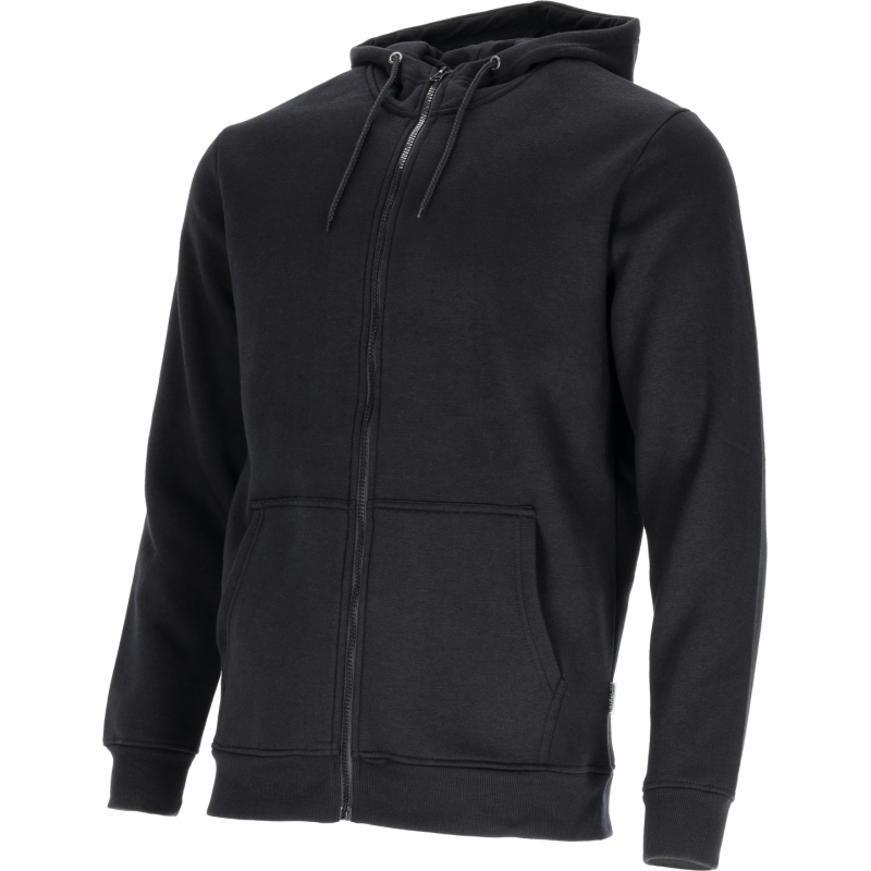 Univerzálna pracovná mikina PORA s kapucňou a zipsom v čiernej farbe. Vyrobená z pohodlnej bavlnenej zmesi (280 g/m²) s česanou vnútornou stranou. Voľný strih a robustný zips zaručujú komfort a odolnosť.