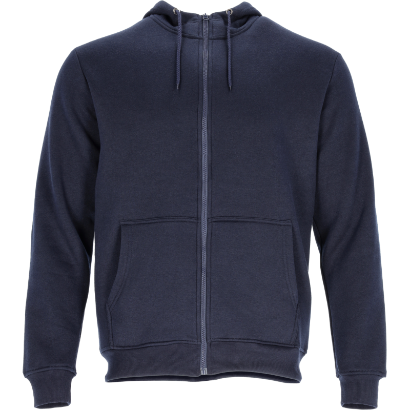 Univerzálna pracovná mikina PORA s kapucňou a zipsom v tmavomodrej farbe. Vyrobená z pohodlnej bavlnenej zmesi (280 g/m²) s česanou vnútornou stranou. Voľný strih a robustný zips zaručujú komfort a odolnosť.