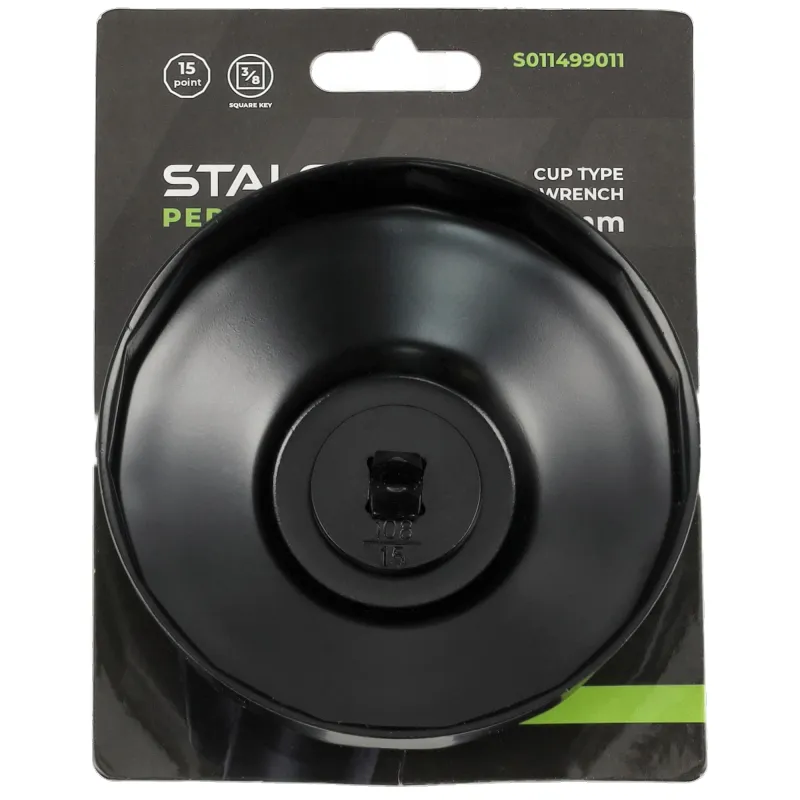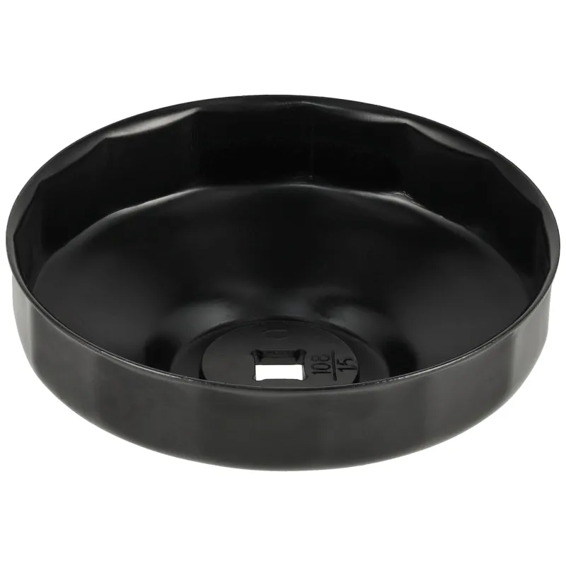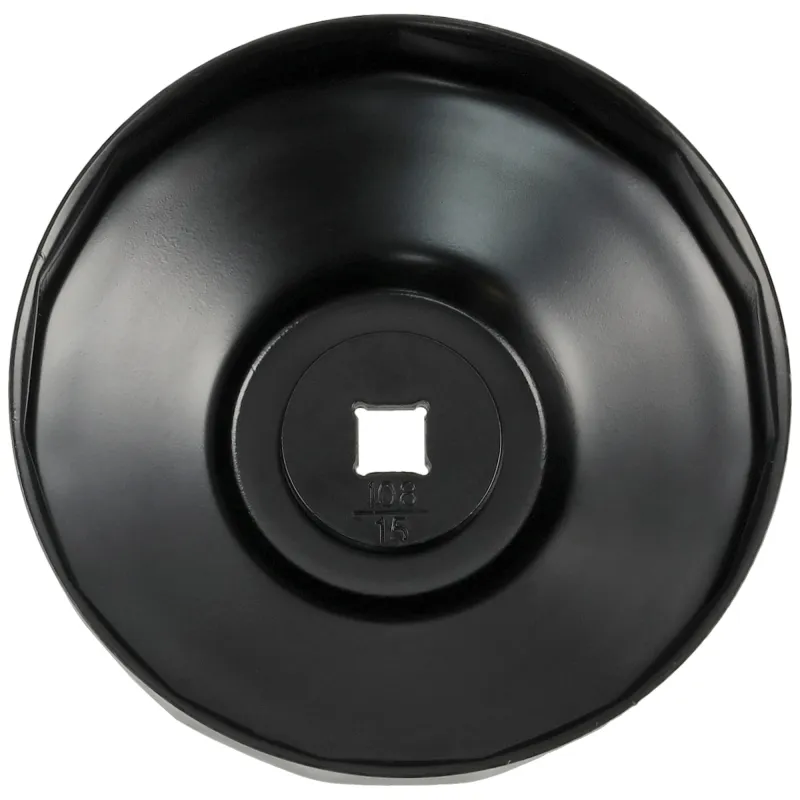 Miskový kľúč na olejové filtre s priemerom 108 mm a 15 hranami. Určený pre profesionálne autoservisy na povoľovanie a uťahovanie filtrov s kovovým puzdrom.