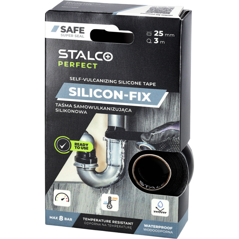Silikónová samovulkanizačná páska STALCO PERFECT (25 mm x 3 m). Odolná tlaku do 8 barov, teplote do 260°C, UV žiareniu a vode. Ideálna pre auto-moto, hydrauliku a izoláciu káblov.
