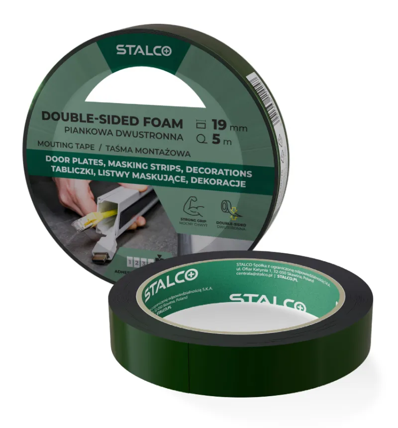 Obojstranná penová páska STALCO (19 mm x 5 m) s hrúbkou 1 mm. Extrémne vysoká priľnavosť (5/5) k rôznym povrchom. Tlmí vibrácie a kompenzuje nerovnosti. Ideálna na montáž líšt a dekorácií.