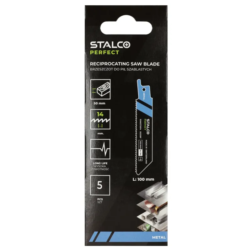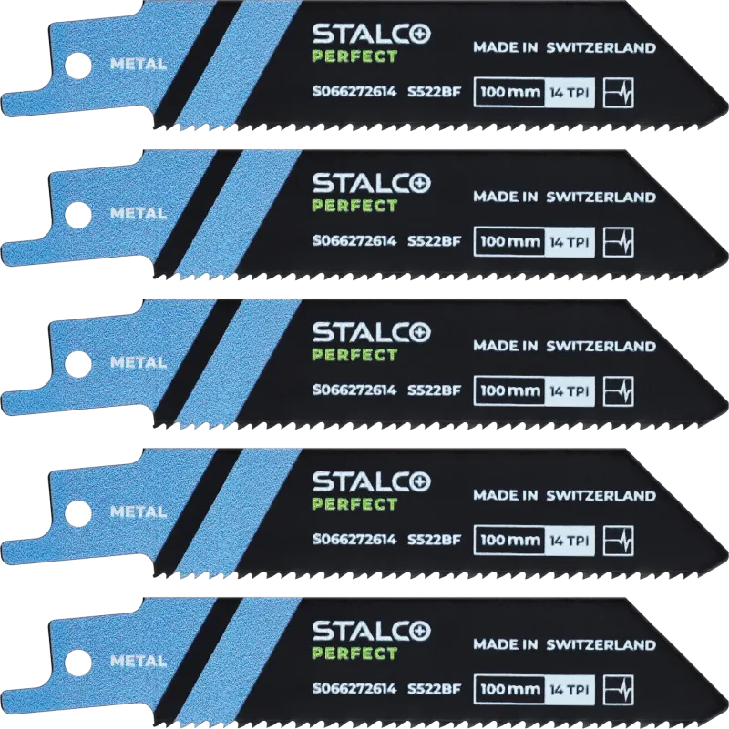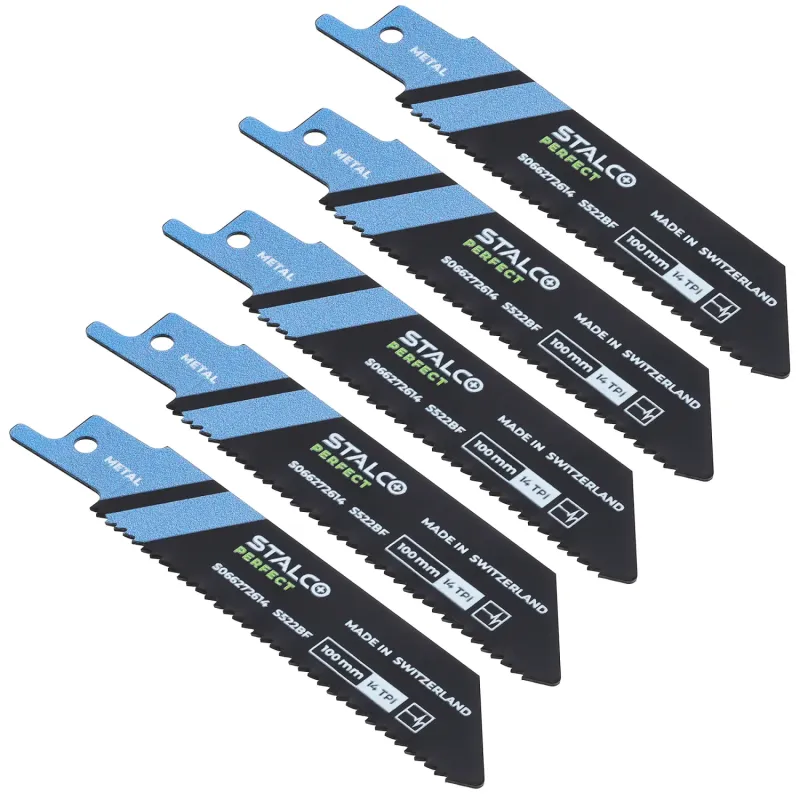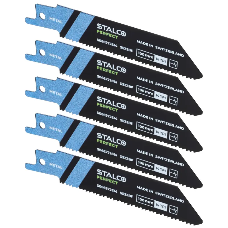5-dielna súprava krátkych bimetalových listov S522BF na kov. Dĺžka 100 mm. Ideálne pre kompaktné akumulátorové píly. Určené pre profily a plechy hrúbky 3-8 mm. Ozubenie 14 TPI.