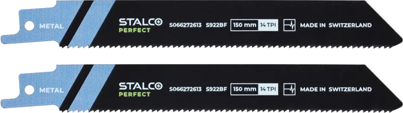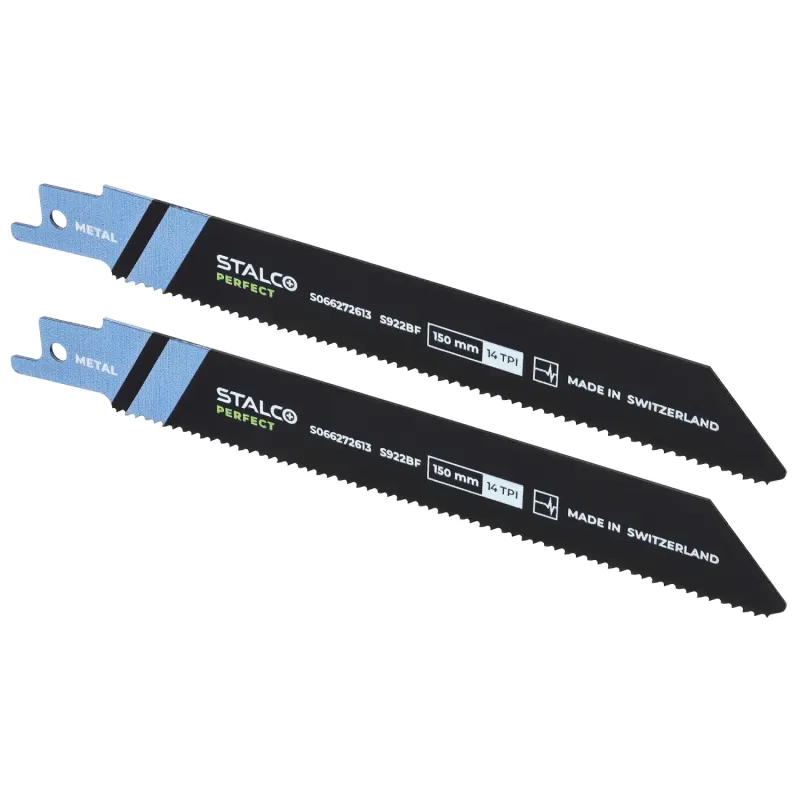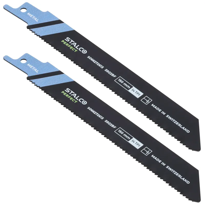 2-dielna súprava bimetalových listov S922BF na kov. Dĺžka 150 mm. Určené pre rýchle rezy do hrubších kovov (3-8 mm). Ozubenie 14 TPI. Flexibilné a odolné.