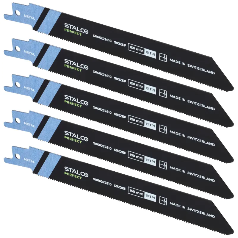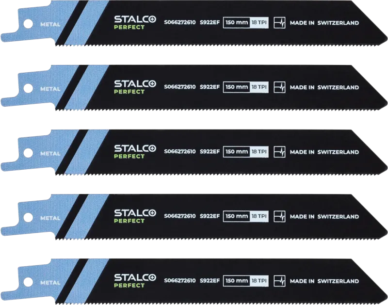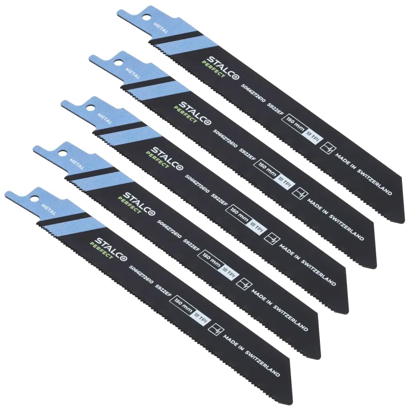 5-dielna súprava bimetalových listov S922EF na kov. Dĺžka 150 mm. Jemné ozubenie (18 TPI) pre kovy hrúbky 1,5-4 mm. Univerzálna dĺžka.