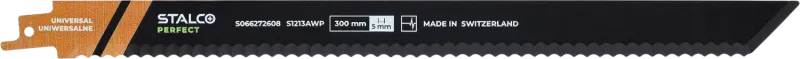 Pílový list S1213AWP na rezanie mäkkých a izolačných materiálov. Dĺžka 300 mm. Zvlnené ostrie. Vhodný na polystyrén, gumu, koberce a kartón.