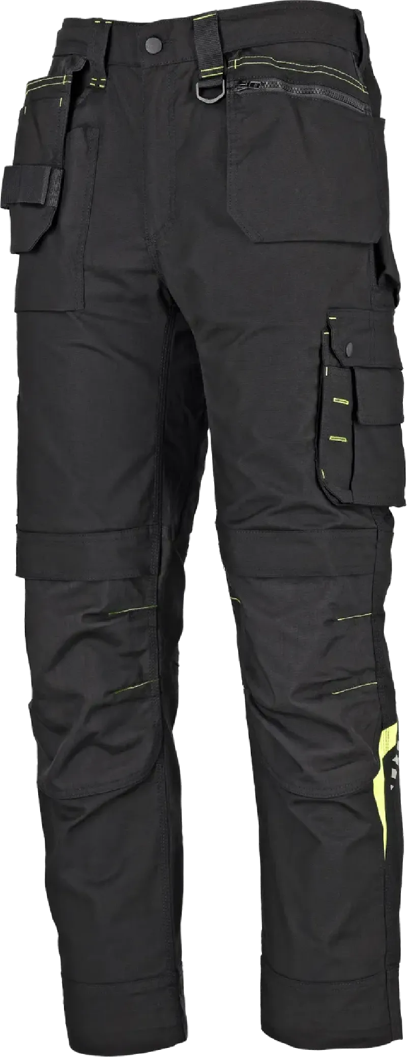 • Praktické detaily: Pás s protišmykovou gumou (gurt), pevný kovový zips YKK, spevnené pútka na opasok, vrecko na telefón/identifikátor, pútka na náradie (nôž, meter, kladivo).