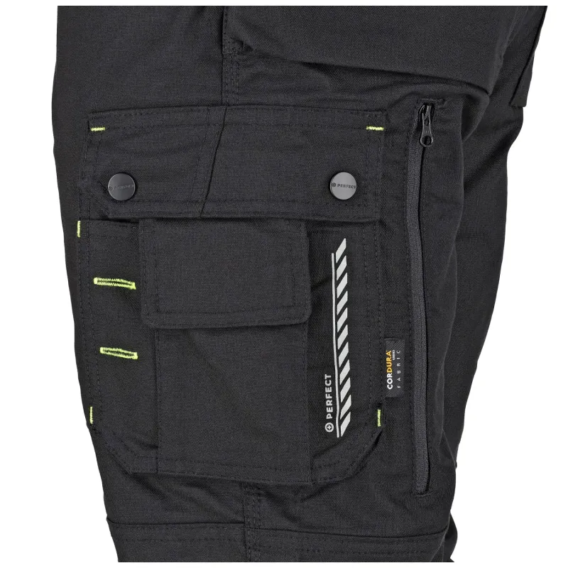 • Zosilnenie CORDURA®: Vrecká na kolenách a montérske vrecká sú zosilnené materiálom CORDURA®, ktorý je extrémne odolný voči oderu a vlhkosti.