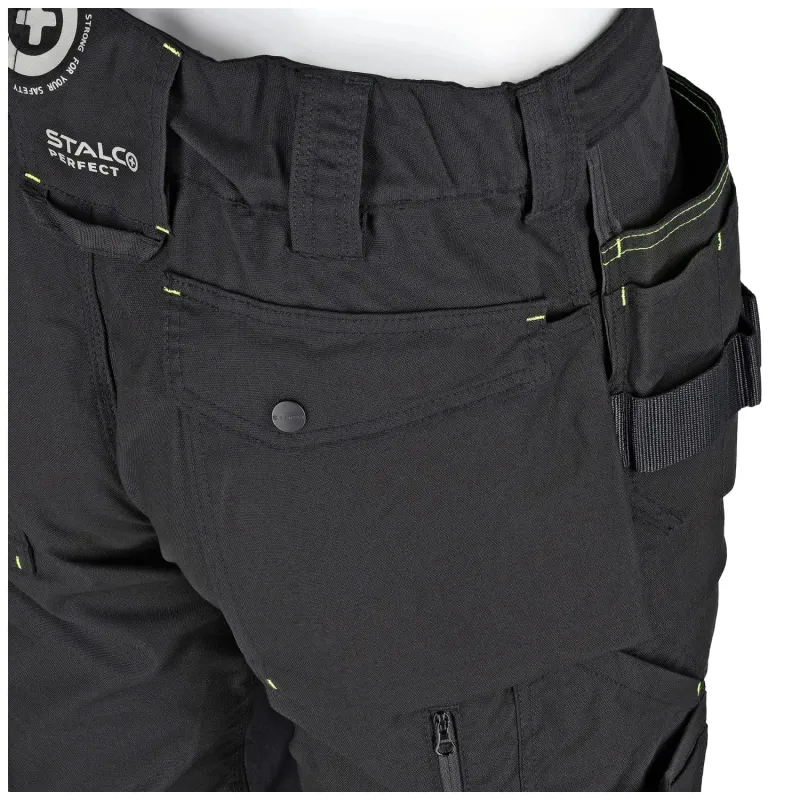 Nová verzia pracovných nohavíc STALCO CANVAS, veľ. L. Prémiová zmes (65% polyester, 32% bavlna, 3% elastan), gramáž 280 g/m². Vrecká a kolená zosilnené CORDURA®, 4-smerný streč, trojité švy a odopínateľné montérske vrecká.