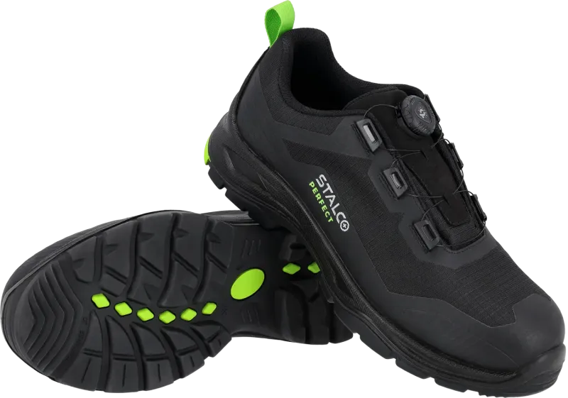 Ľahká a moderná bezpečnostná obuv STALCO PERFECT (S3S SR FO), veľ. 47. Inovatívny systém uťahovania "spinlock" (otočné koliesko). Zvršok z TPU, kompozitná špica, kompozitná stielka a protišmyková PU/Guma podošva.