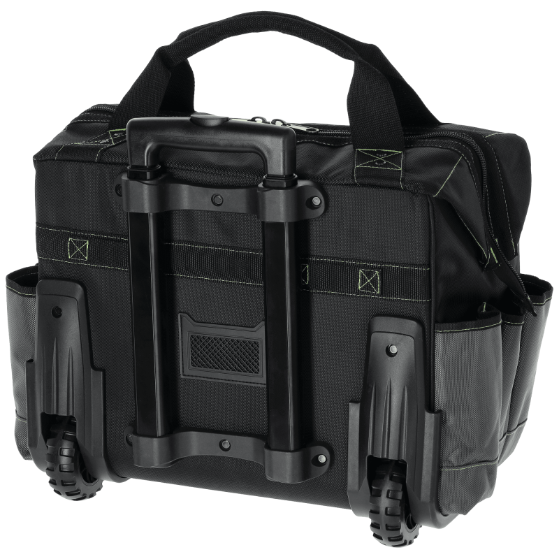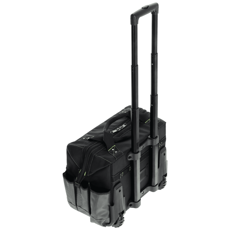 Veľká profesionálna taška na kolesách s teleskopickou rukoväťou. Objemná hlavná komora (49x30x44 cm), tuhá konštrukcia. 11 vonkajších a 6 vnútorných vreciek. Reflexné prvky.