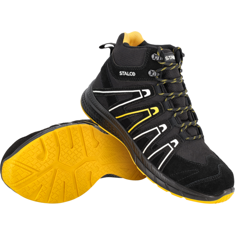 Pri výrobe podrážky bol použitý odolný PU/PU (polyuretán), čo zaručuje nízku hmotnosť, spoľahlivú priľnavosť a dlhú životnosť. Podošva zároveň disponuje antistatickými, olejoodolnými a protišmykovými vlastnosťami, vďaka čomu sa skvelo hodí do rôznych priemyselných a stavebných podmienok. V prednej časti topánky sa nachádza oceľová špica, ktorá účinne chráni prsty pred mechanickými zraneniami, zatiaľ čo pevne uzavretá päta zvyšuje stabilitu celej chodidlovej časti a spevňuje členok.