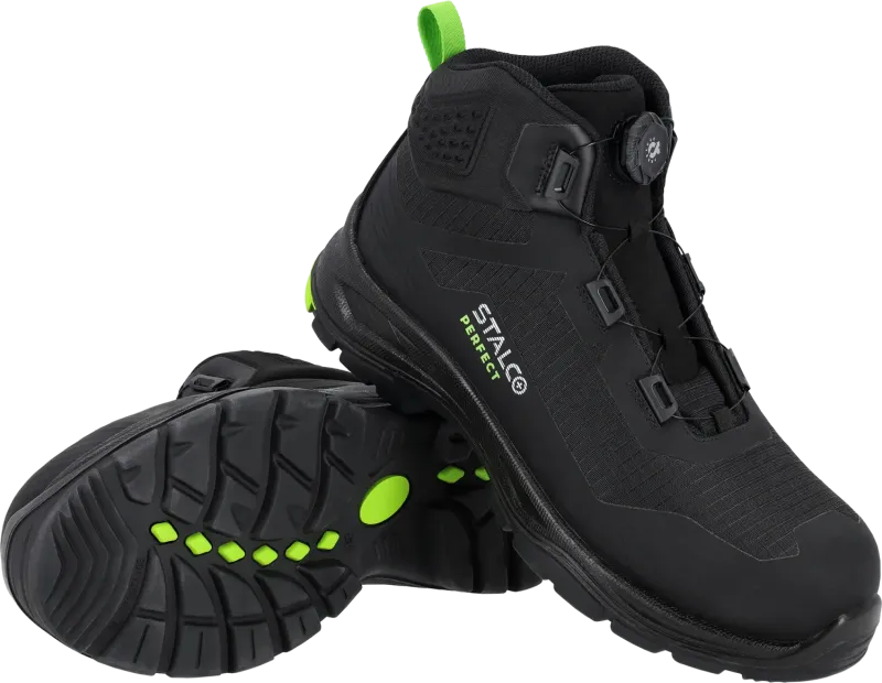 Bezpečnostná členková obuv SPINNER HIGH S3S z radu STALCO PERFECT je moderná a odolná obuv vytvorená pre používateľov, ktorí očakávajú maximálnu ochranu a komfort pri každodennej práci. Solídne spracovanie, moderný dizajn a vysokokvalitné materiály z nej robia ideálnu voľbu pre priemyselné aj stavebné prostredie.