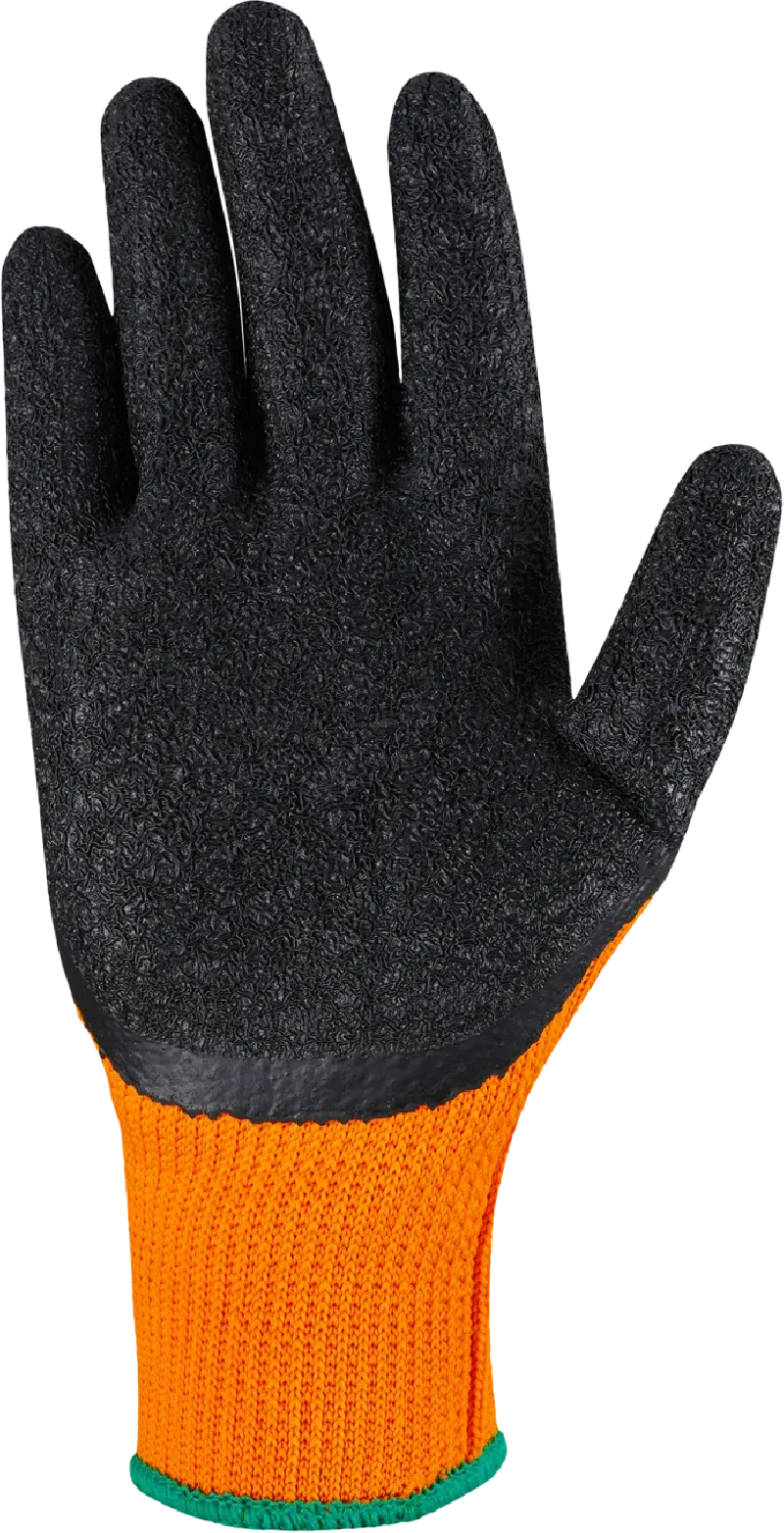 Sú vyrobené z odolnej zmesi polyesteru a bavlny s hrubším úpletom 7G, ktorý výborne izoluje teplo a zároveň dovoľuje pokožke dýchať. Vnútorná strana dlane je potiahnutá vrstvou zvrásneného latexu, ktorý je vysoko odolný voči oderu, vodeodolný a zaručuje bezpečný, protišmykový úchop aj vo vlhkom prostredí. Vďaka strihu a použitým materiálom sú rukavice pohodlné a zachovávajú dobrú citlivosť úchopu.