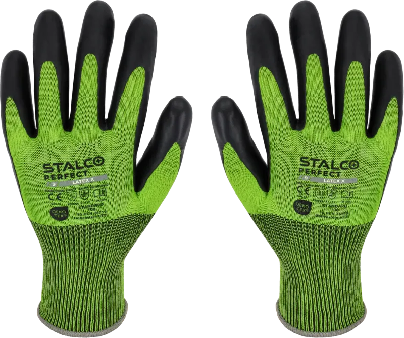 Vysoko odolné rukavice STALCO PERFECT (veľ. 7/S) s úpletom 15G a ECO-Latex povlakom. Certifikát Oeko-Tex® Standard 100. Ochrana proti kontaktnému teplu do 250°C (EN 407: X2XXXX) a oderu (EN 388: 3141X).