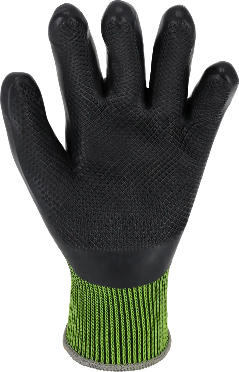 Rukavice sú vyrobené z polyesterového úpletu so spletom 15G, ktorý je tenký a flexibilný, čo zaisťuje vynikajúcu presnosť a komfort. Dlaňová časť je potiahnutá špeciálnou vrstvou ECO-Latex. Táto formula latexu z prírodného kaučuku je mimoriadne elastická, má vysokú mechanickú pevnosť a je priateľskejšia k životnému prostrediu. Špeciálne lisované (tlačené) zakončenie na povrchu dlane zaisťuje lepší a pevný úchop.