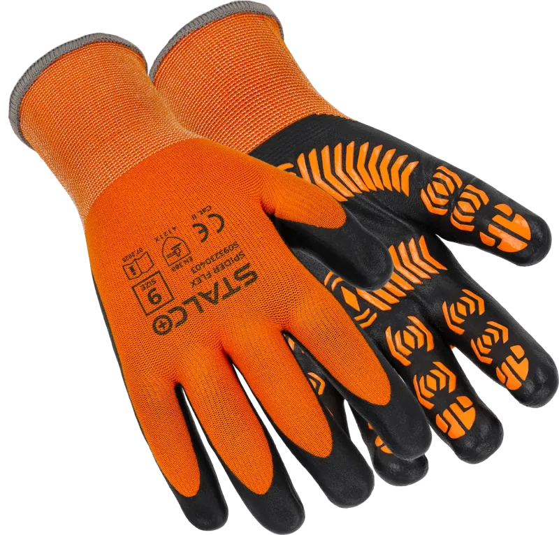 Pracovné rukavice STALCO SPIDER FLEX (veľ. 8/M) s ochranou proti oderu (4121X). Priedušný 15G úplet (nylon/elastan) s ultratenkou vrstvou nitrilovej peny a protišmykovou nitrilovou potlačou pre extra úchop. Kompatibilné s dotykovými obrazovkami.