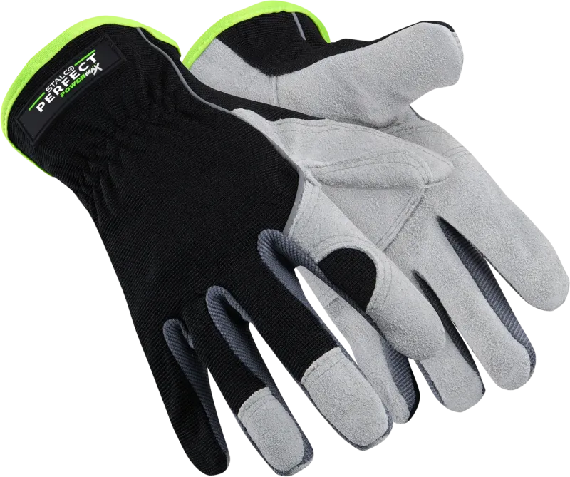 Profesionálne pracovné rukavice STALCO PERFECT (veľ. 10/XL) kombinujúce odolnú hovädziu štiepenku na dlani a priedušný, elastický polyester na chrbte. Zaisťujú pevný úchop a vysokú odolnosť proti oderu (EN 388: 3132X).