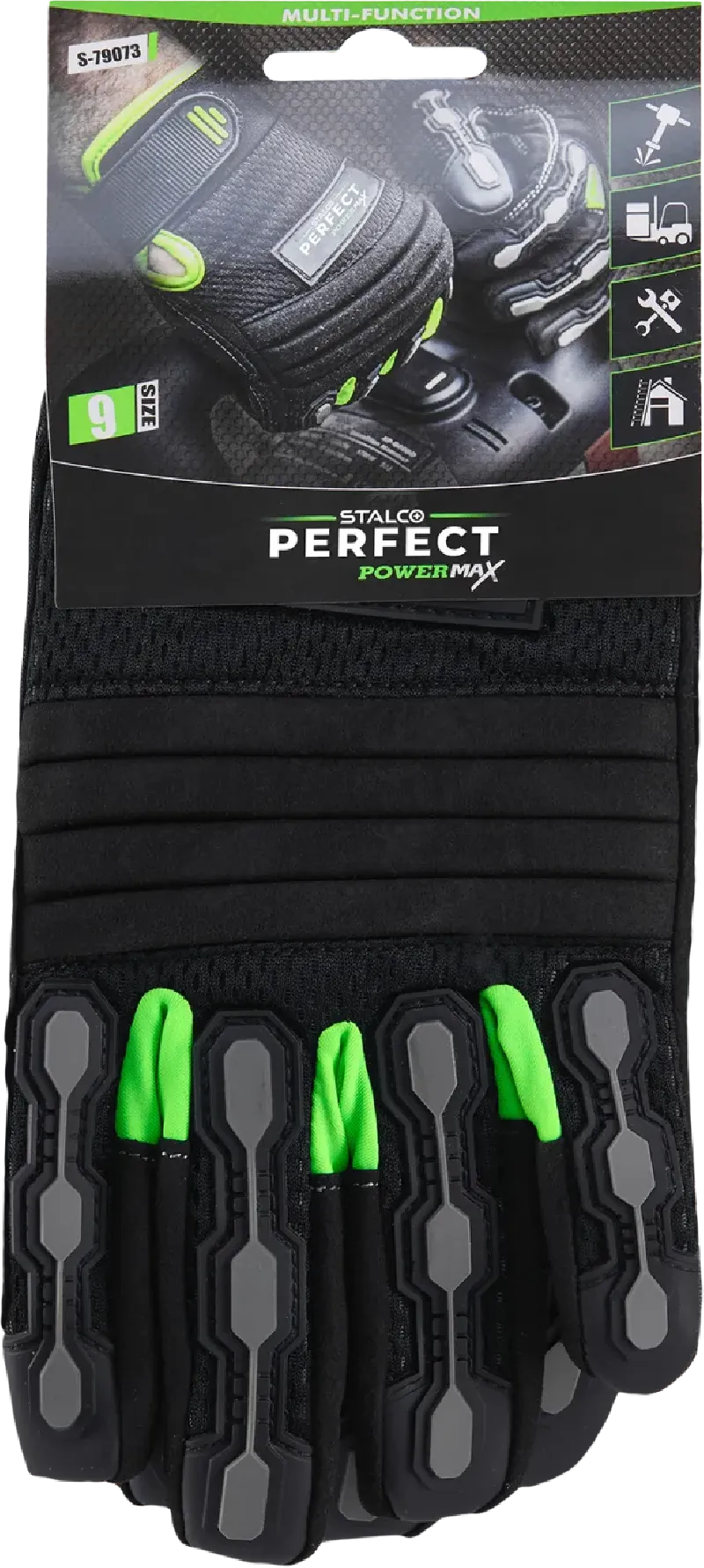 Vysoko odolné profesionálne rukavice STALCO PERFECT (veľ. 10/XL). TPR chrániče hánok a prstov absorbujú nárazy. Gélové vložky a penové výstuhy EVA tlmia vibrácie. Zosilnený úchop (PU), priedušná sieťovina. EN 388 (2121XP).