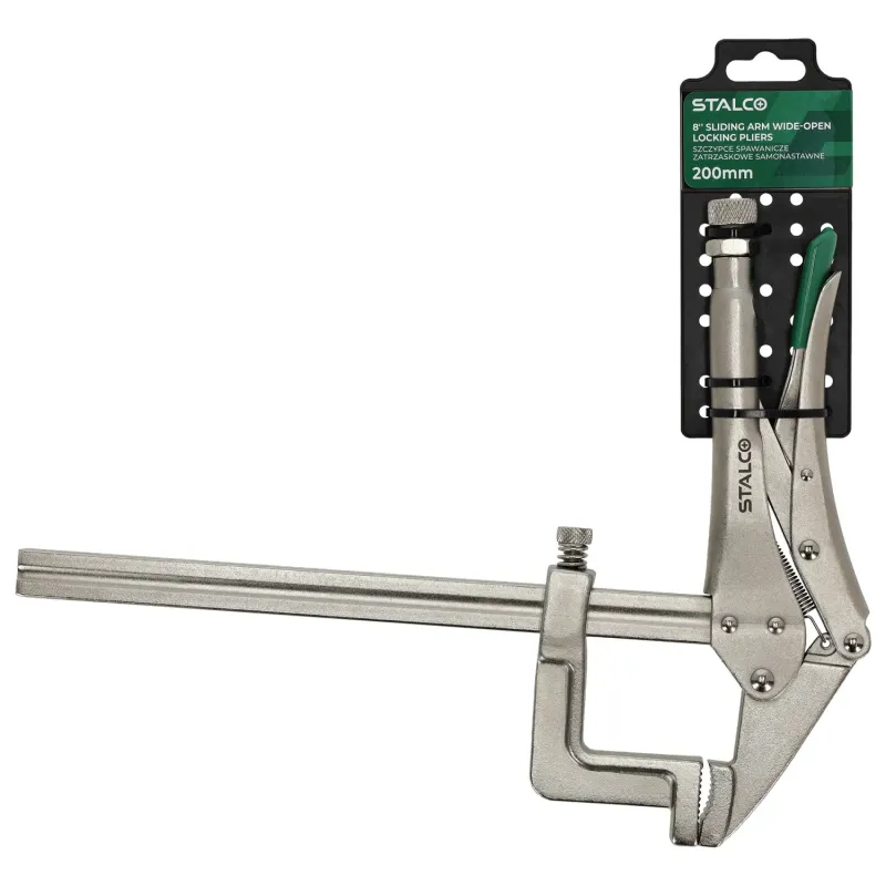 Samosvorné kliešte STALCO s rýchlym nastavením (200 mm) sú nevyhnutným vybavením každej profesionálnej zváračskej a zámočníckej dielne. Zabezpečujú maximálnu stabilitu a pevné uchytenie prvkov počas zvárania, rezania či brúsenia.