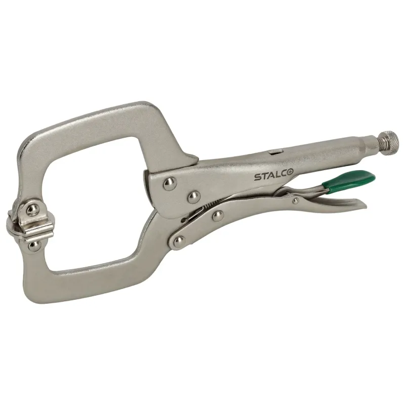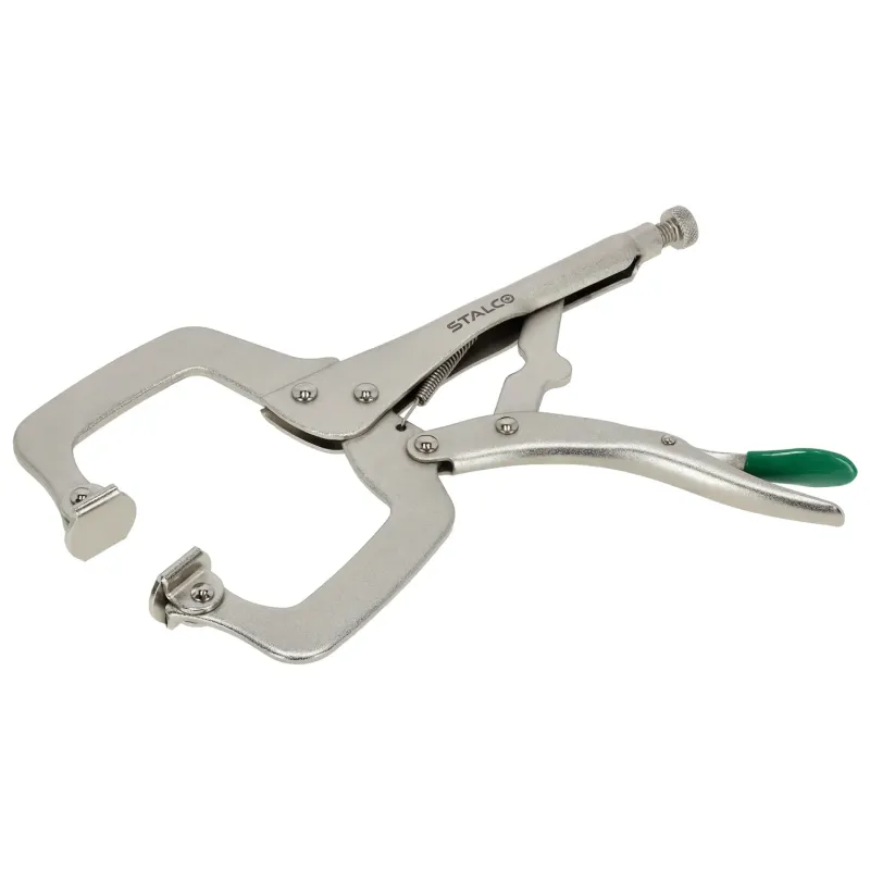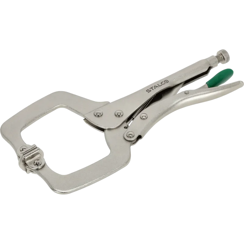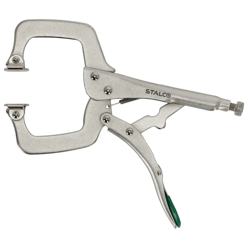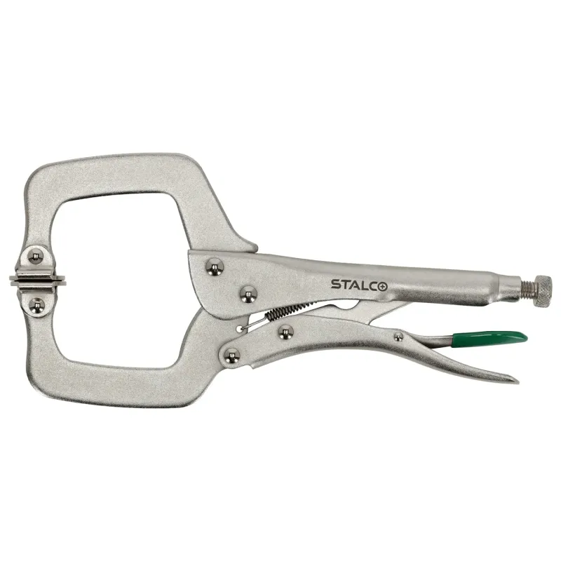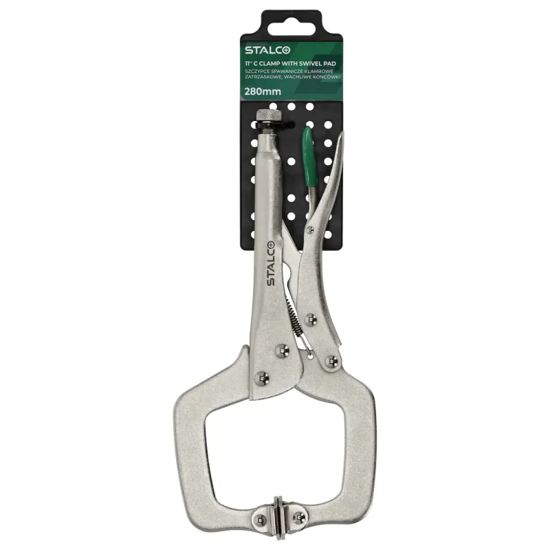 Profesionálne samosvorné kliešte STALCO typu C (280 mm) s výkyvnými koncovkami sú nenahraditeľným nástrojom pri zváračských a montážnych prácach. Tento model vyniká prispôsobivými kĺbovými podložkami na koncoch čeľustí.